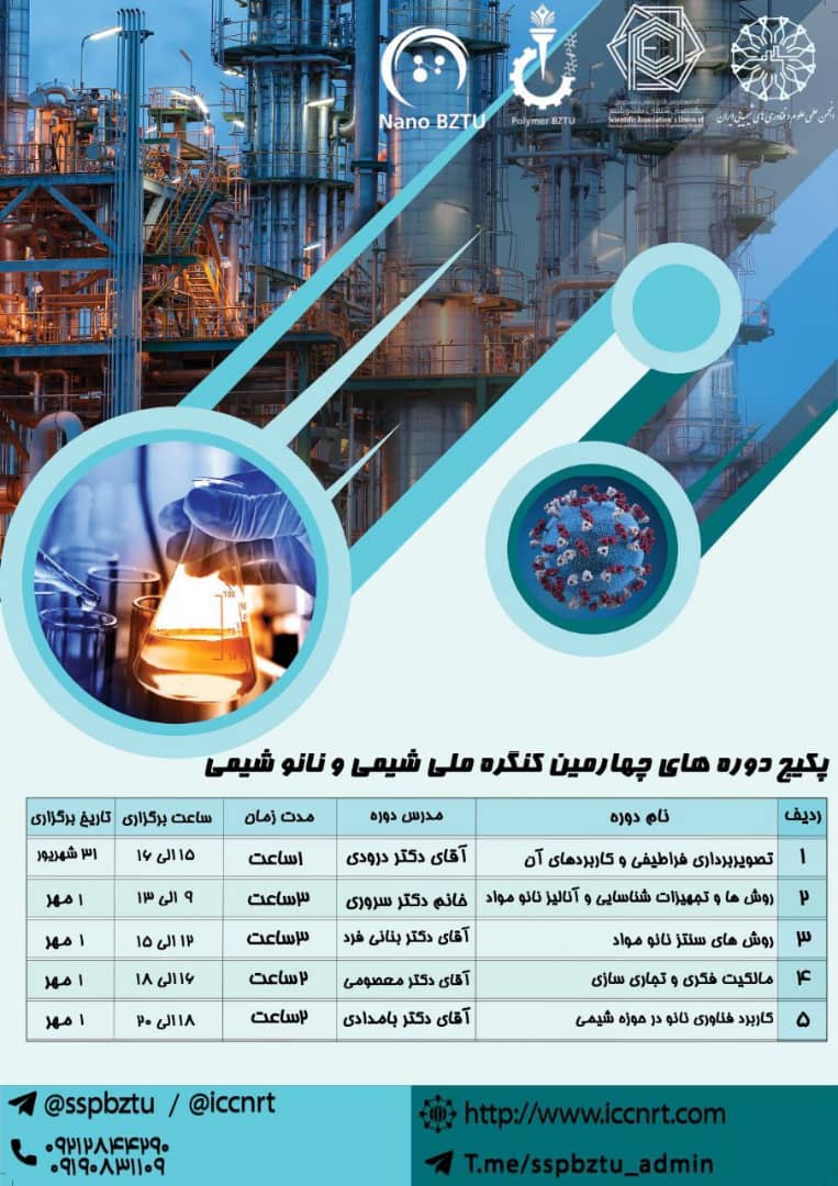 دورههای آموزشی چهارمین کنگره ملی شیمی و نانو شیمی، از پژوهش تا فناوری توسط انجمن علوم و فناوری های شیمیایی…