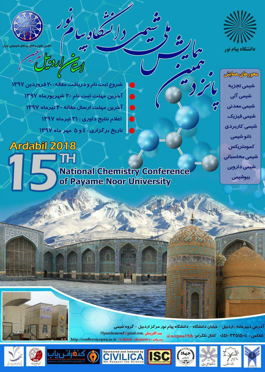 با یاری خداوند متعال دانشگاه پیام نور مرکز اردبیل با همکاری انجمن علوم و فناوری های شیمیایی ایران پانزدهمین همایش ملی شیمی دانشگاه پیام نور را به مدت دو روز در تاریخ 4 و 5 مهرماه (چهارشنبه و پنج شنبه) در هتل چالدران سرعین برگزار می نماید. لازم به ذکر است که افتتاحیه همایش در روز چهارشنبه به تاریخ 4 مهر ماه ماه در ساعت 9 صبح در هتل چالدران سرعین برگزار خواهد شد. به همین منظور دبیرخانه همایش از کلیه اساتید، دانشجویان، پژوهشگران، متخصصین دانشگاهی، مراکز پژوهشی و صنایع شیمیایی جهت شرکت در این همایش علمی دعوت به عمل می آورد.